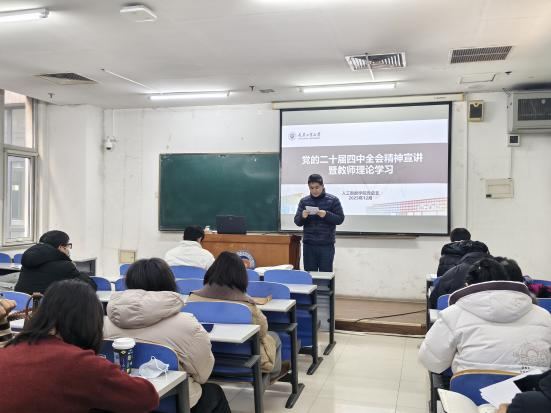 为深入学习贯彻党的二十届四中全会精神,人工智能学院于12月11日在大软B102召开专题宣讲会,全体教师和学生代表参会。